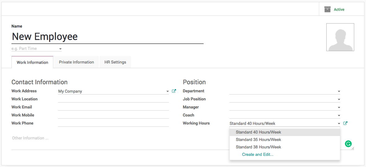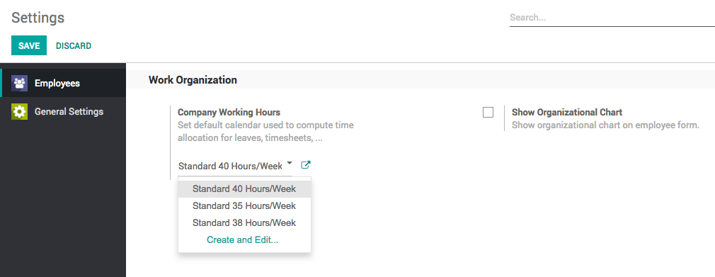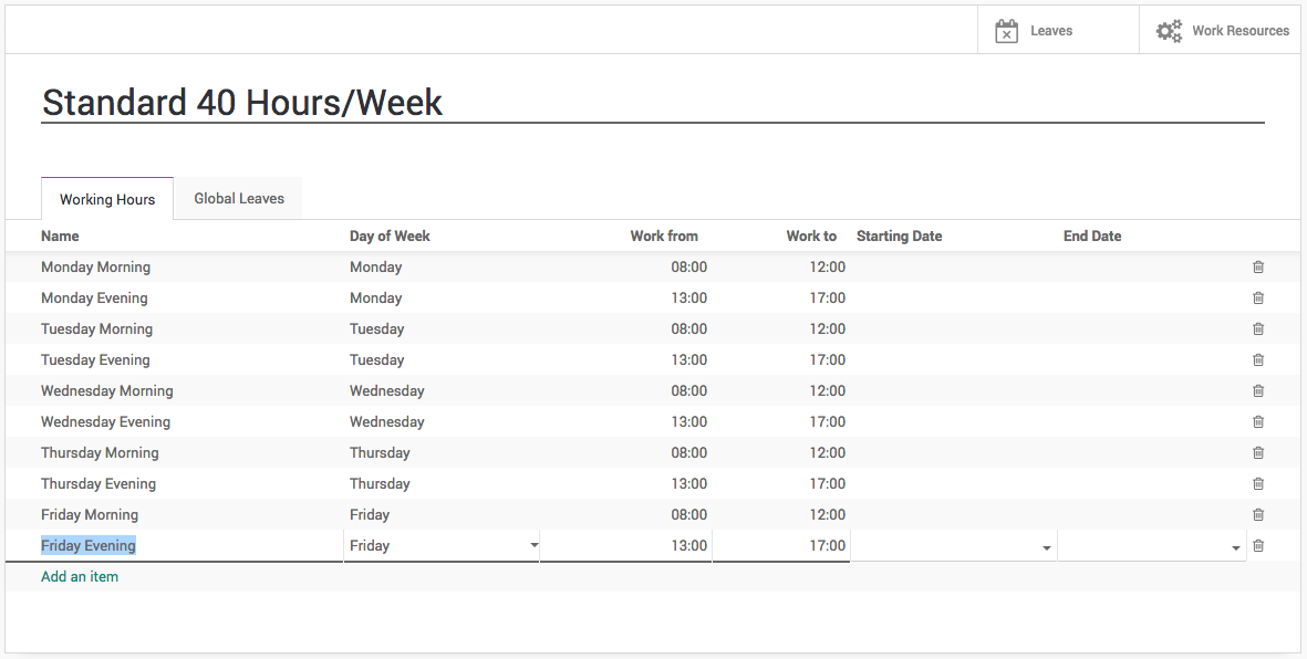 Tip: The working schedule can be change for specific employees directly on the employee configuration.