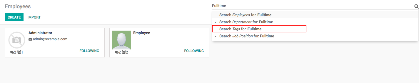 Create and assign the tags to the employee carefully, as based on the tags leaves will be allocated. In our business case we will create a Fulltime and Parttime two different tags to differentiate the employees at the time of leave allocation.