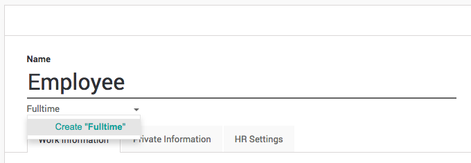 Click on Create “Fulltime” link to create and assign created tag to new employee being created.